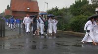 Mit dem Austragen der Schützenscheiben, und dem Segnen am Haus zog der dritte Zug bei regnerischem Wetter durch Adenstedt: