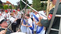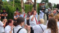 Kurz pausierte der DFGA-Umzug am Sonntag, um die Schafferdamen der Adenstedter Junggesellschaft abzuholen.