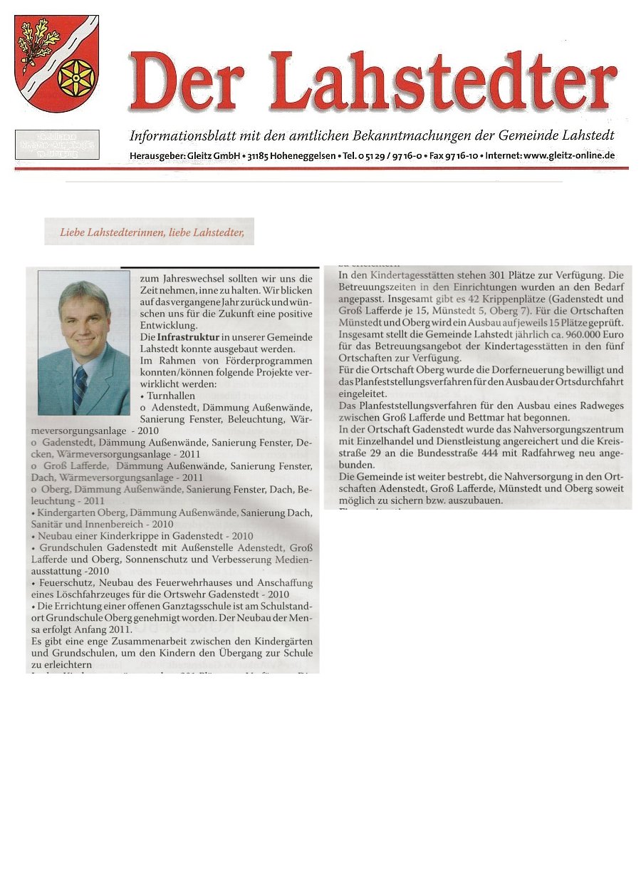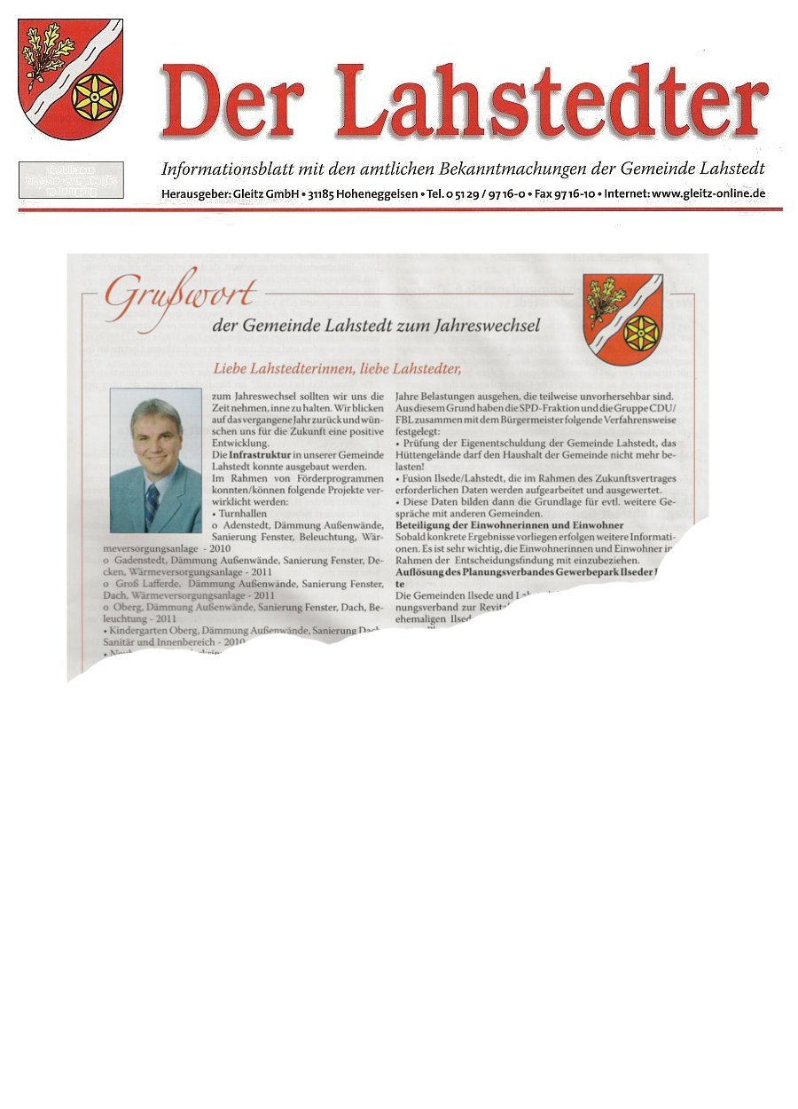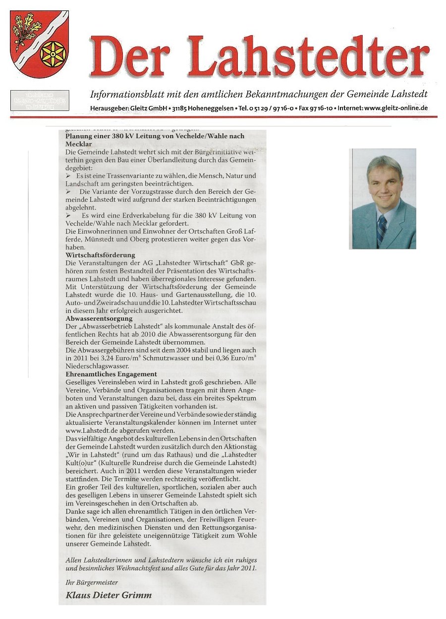 Im "Der Lahstedter" gefunden. Das Grußwort des Bürgermeisters Klaus Dieter Grimm zum Jahreswechsel:
